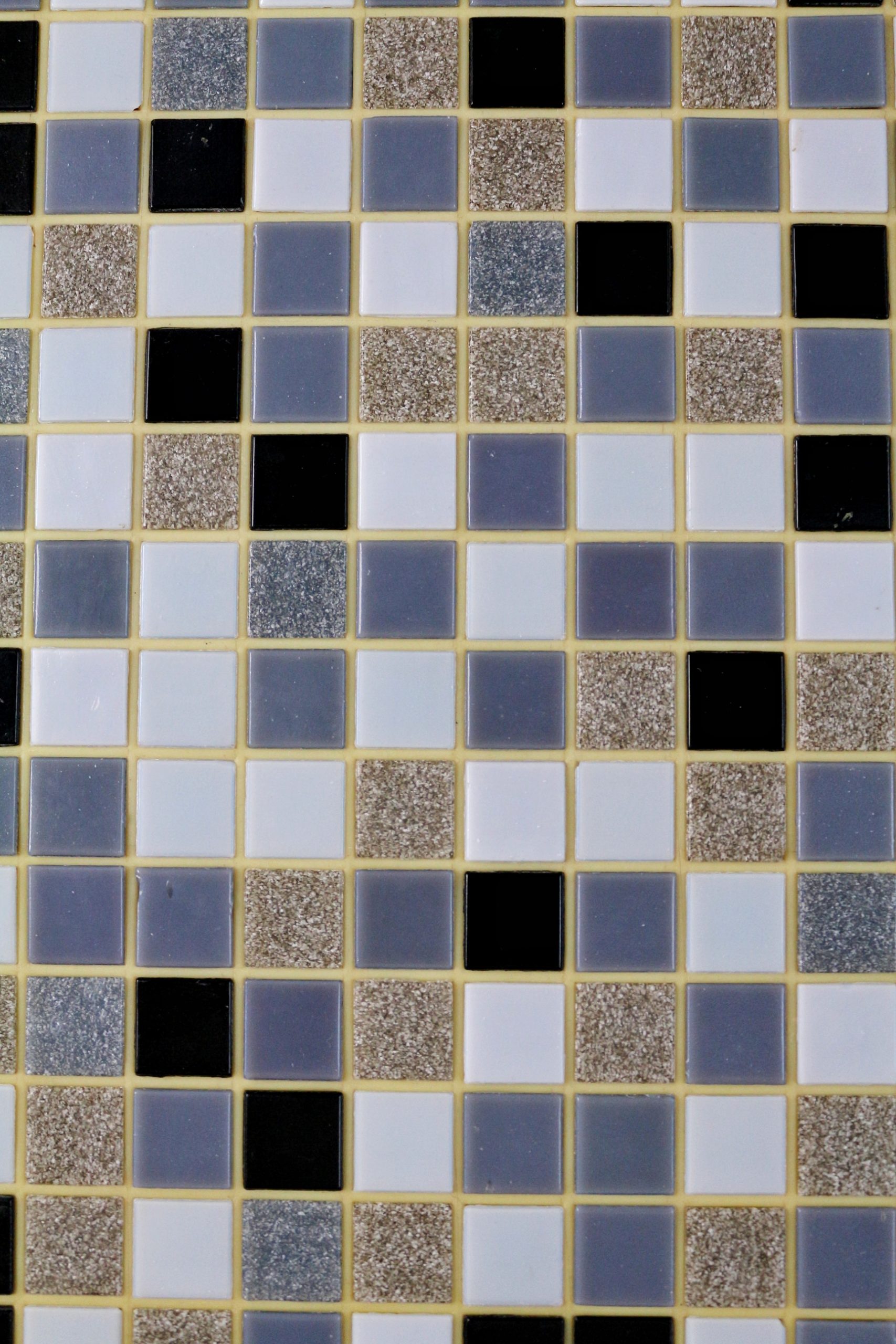 Серый микс из мозаики из экологически чистого стекла. Продается в листах, лицевой стороной идет на пленке. После укладки пленку нужно удалить, и мозаика готова к затирке. Отгрузка со склада от 10 листа. Гарантированное качество – собираем мозаику этой фабрики уже более 18 лет.
