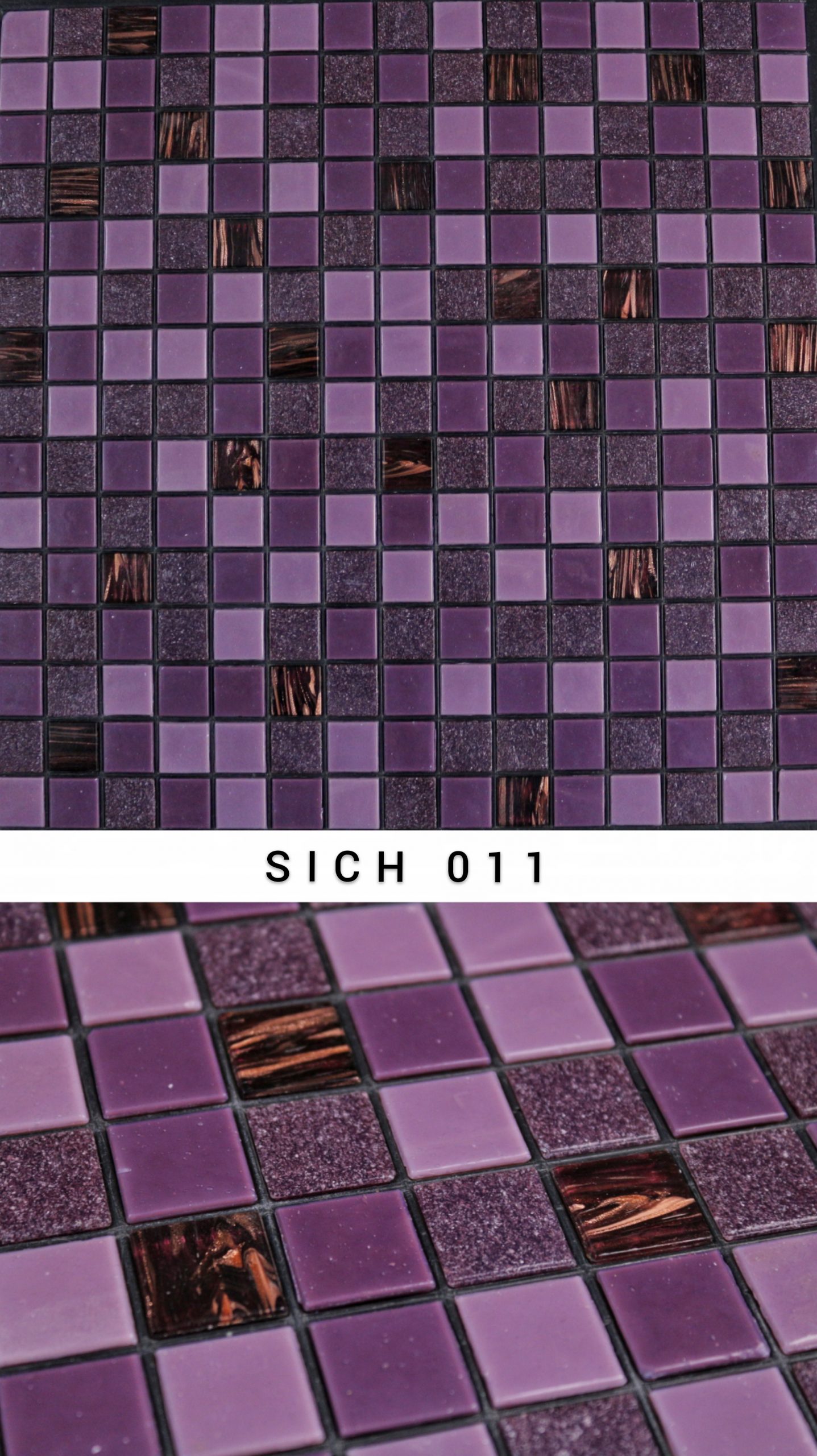 Фиолетовый микс из мозаики из экологически чистого стекла. Продается в листах, лицевой стороной идет на пленку.