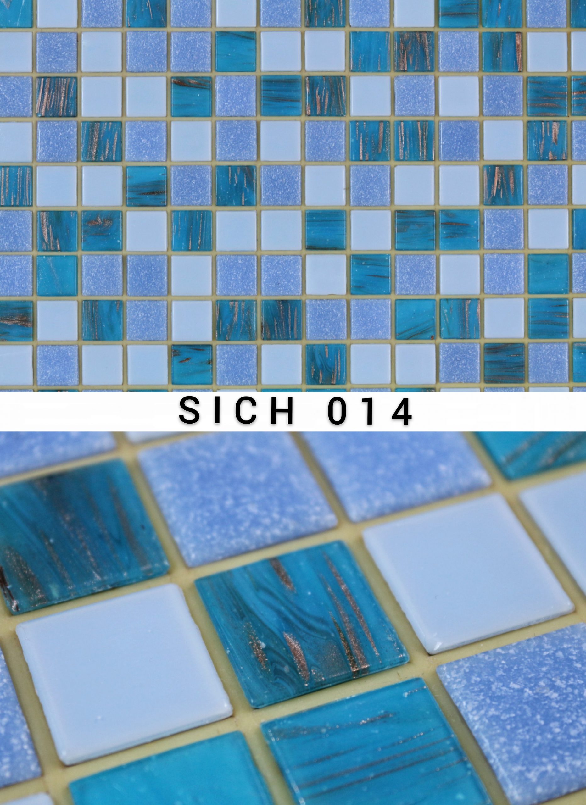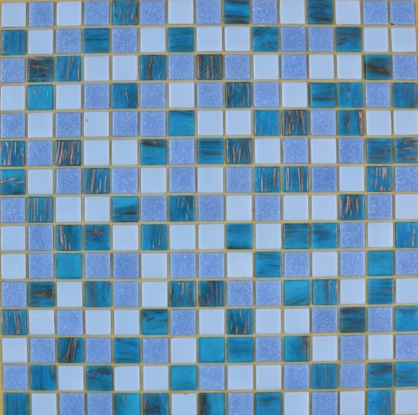 Голубой микс из мозаики из экологически чистого стекла. Продается в листьях, лицевой стороной идет на пленке. После укладки пленку нужно удалить, и мозаика готова к затирке. Отгрузка со склада от 10 листов. Гарантированное качество – собираем мозаику этой фабрики уже больше 18 лет.