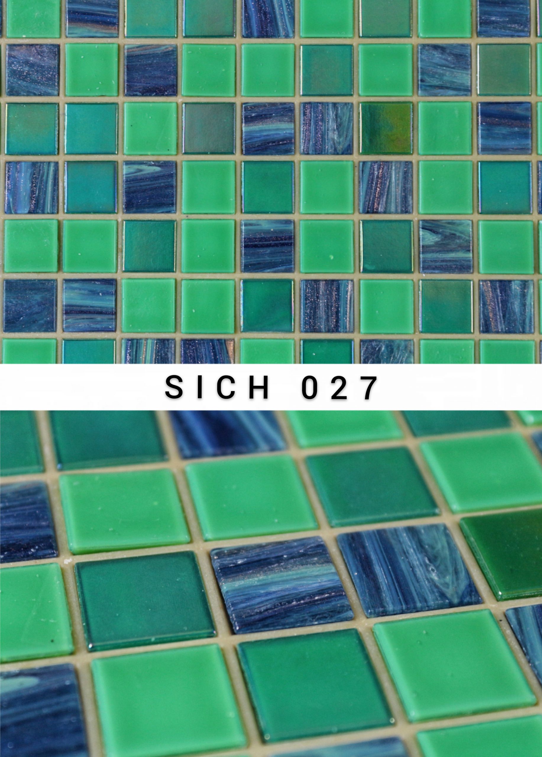 Зеленый микс из мозаики из экологически чистого стекла. Продается в листах, лицевой стороной идет на пленке. После укладки пленку нужно удалить, и мозаика готова к затирке. Отгрузка со склада от 10 листа. Гарантированное качество – собираем мозаику этой фабрики уже более 18 лет.