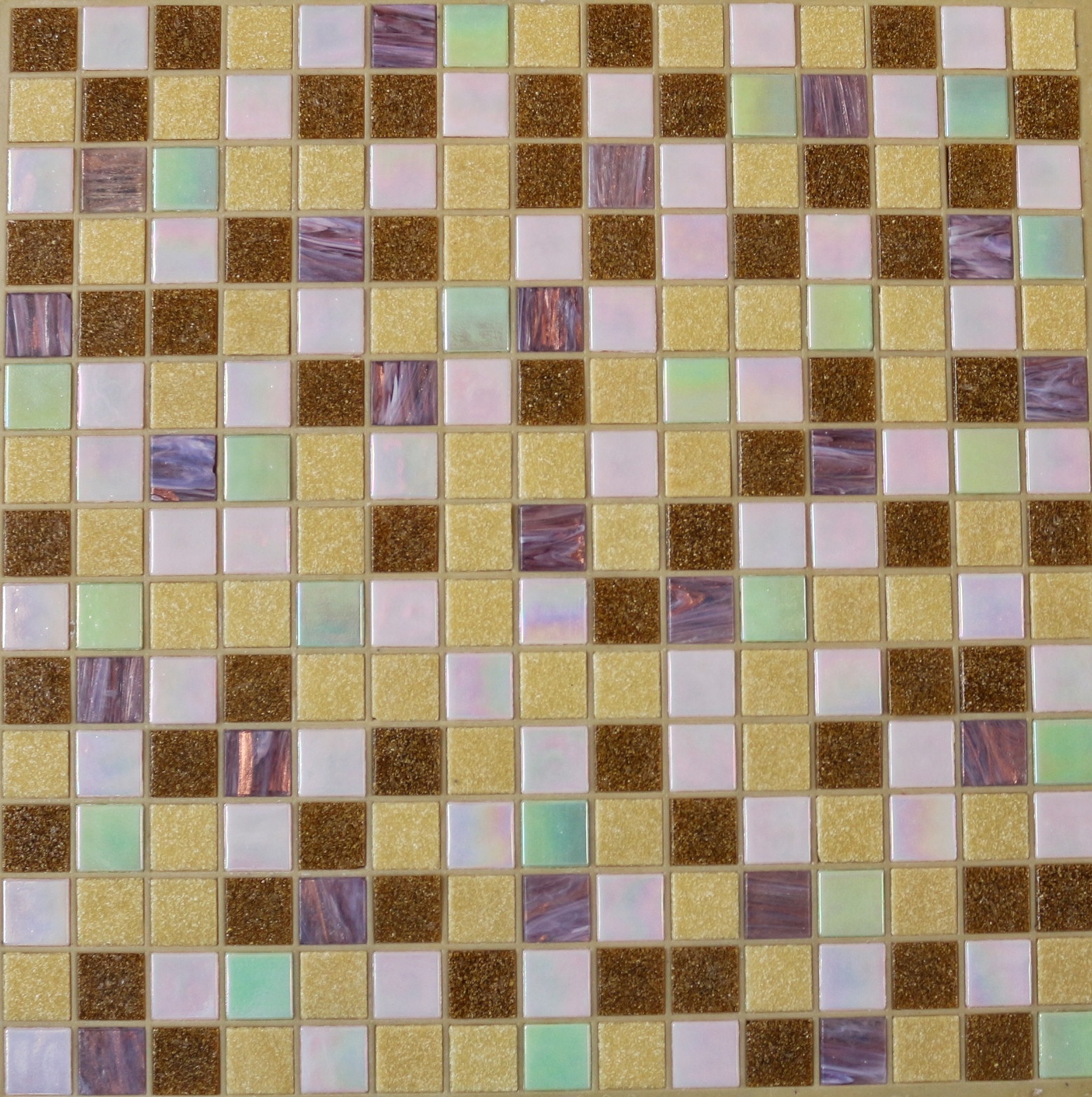 Песочный микс из мозаики из экологически чистого стекла. Продается в листах, лицевой стороной идет на пленке. После укладки пленку нужно удалить, и мозаика готова к затирке. Отгрузка со склада от 10 листа. Гарантированное качество – собираем мозаику этой фабрики уже более 18 лет.