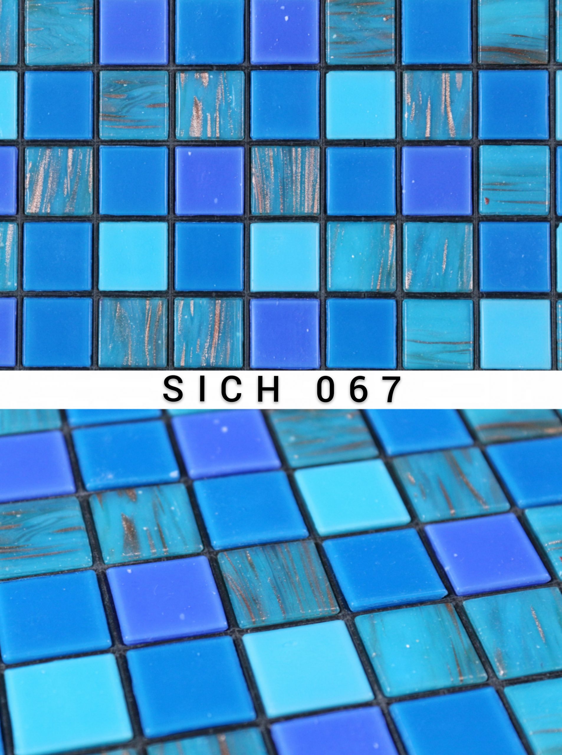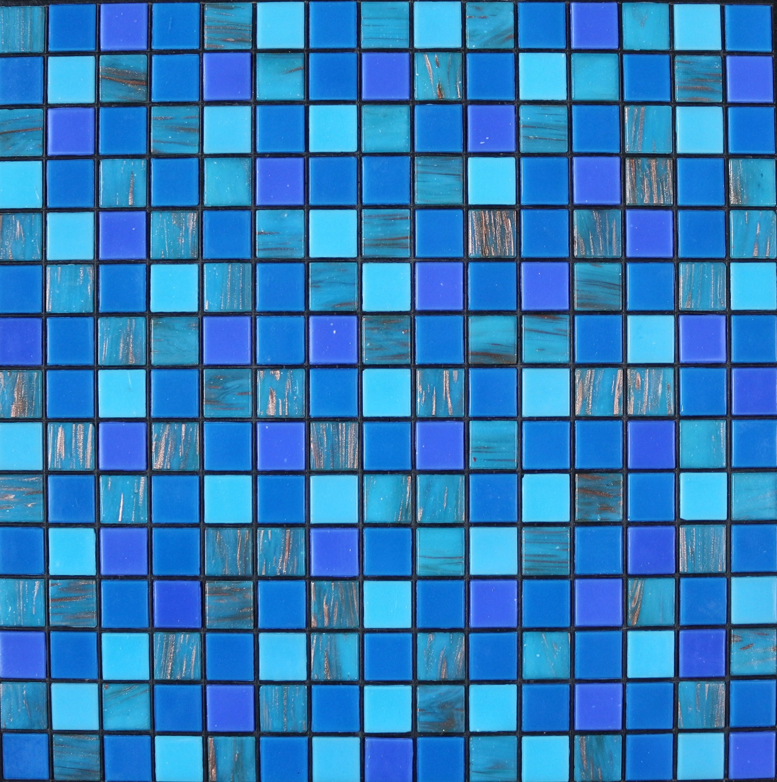 Синий микс из мозаики из экологически чистого стекла. Продается в листах, лицевой стороной идет на пленке. После укладки пленку нужно удалить, и мозаика готова к затирке. Отгрузка со склада от 10 листа. Гарантированное качество – собираем мозаику этой фабрики уже более 18 лет.