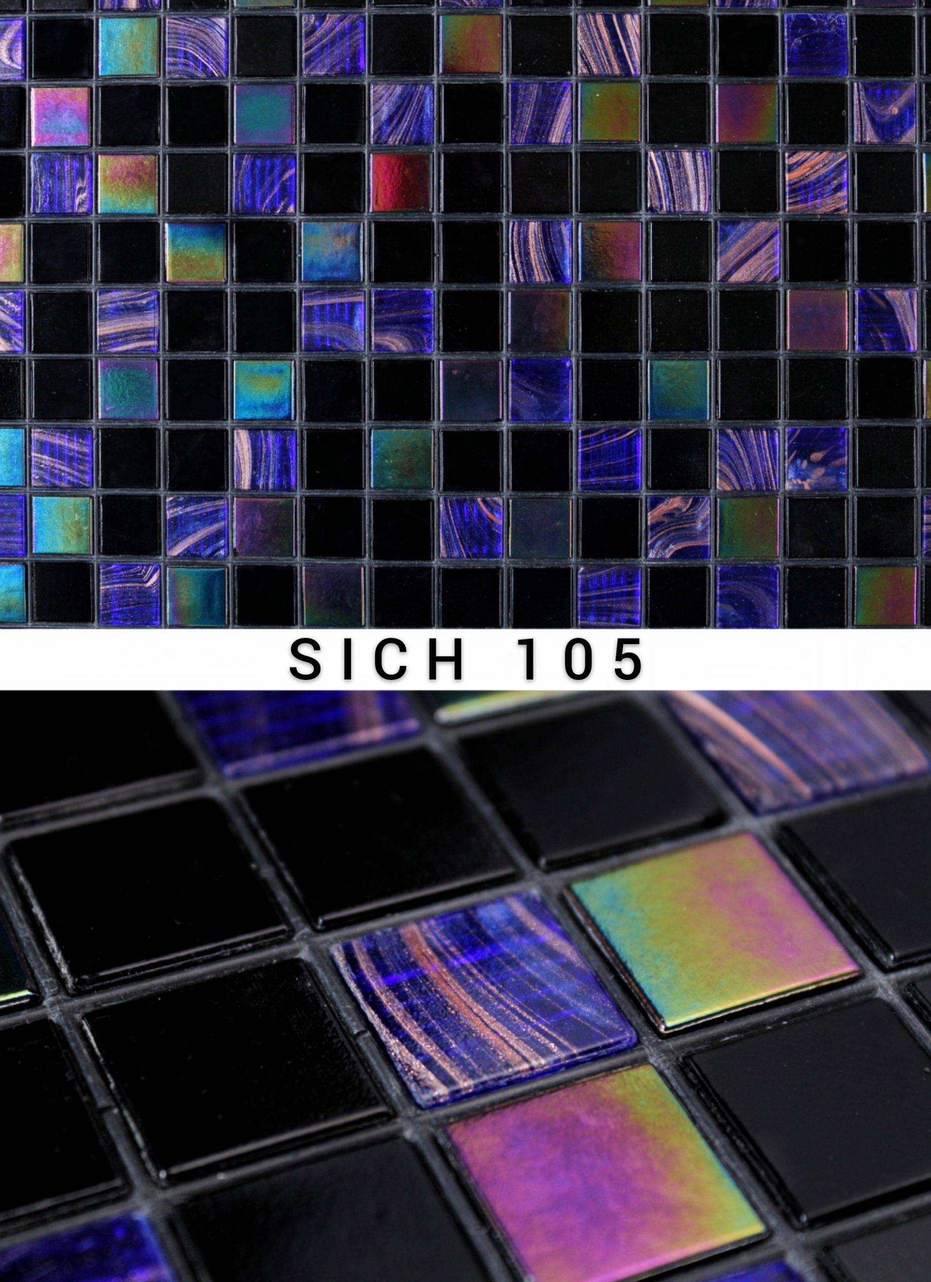 Темный микс из мозаики из экологически чистого стекла. Продается в листах, лицевой стороной идет на пленке. После укладки пленку нужно удалить, и мозаика готова к затирке. Отгрузка со склада от 10 листа. Гарантированное качество – собираем мозаику этой фабрики уже более 18 лет.