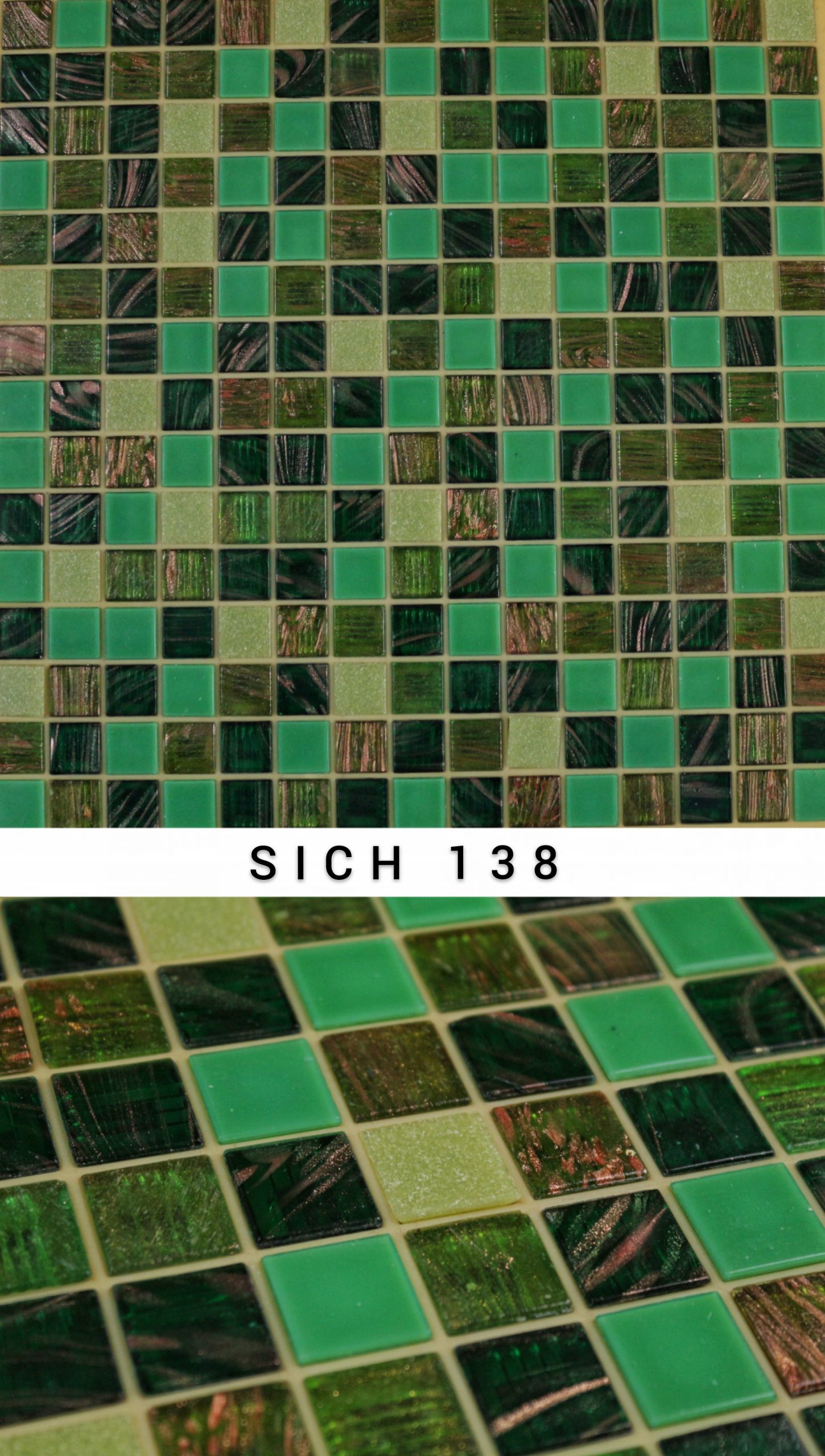 Зеленый микс из мозаики из экологически чистого стекла. Продается в листах, лицевой стороной идет на пленке. После укладки пленку нужно удалить, и мозаика готова к затирке. Отгрузка со склада от 10 листа. Гарантированное качество – собираем мозаику этой фабрики уже более 18 лет.